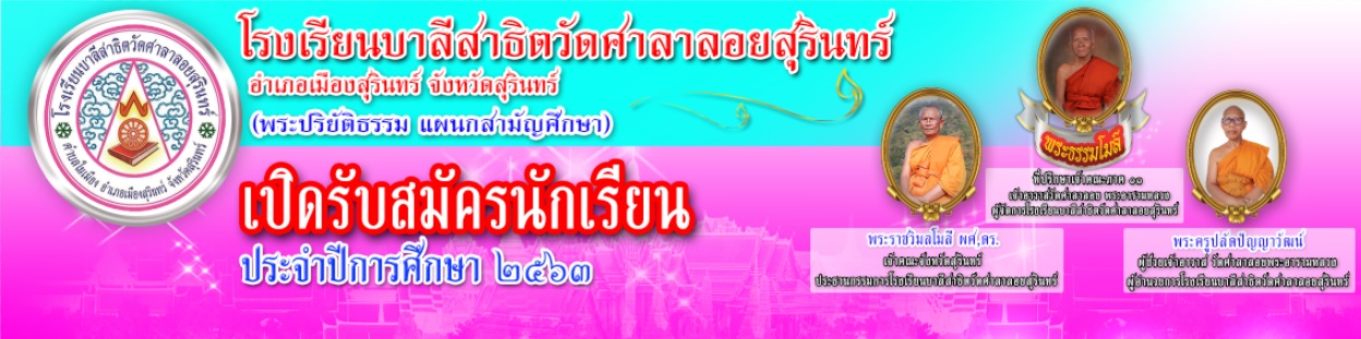 โรงเรียนบาลีสาธิตวัดศาลาลอยสุรินทร์ วัดศาลาลอยพระอารามหลวง ต.ในเมือง อ.เมืองสุรินทร์ จ.สุรินทร์ 32000